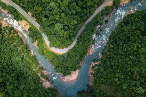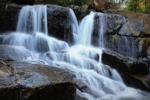 The area is having many streams flowing over the undulating rocks in the deep woods.
